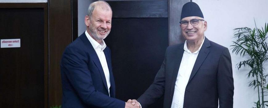 उपप्रधानमन्त्री तथा अर्थमन्त्री विष्णुप्रसाद पौडेल र विश्व बैंकका दक्षिण एसिया क्षेत्र हेर्ने उपाध्यक्ष जोहानेस जुटबीच शिष्टाचार भेटघाट भएको छ।अर्थ मन्त्रालयमा आज भएको उक्त भेटमा उनीहरुबीच समग्र अर्थतन्त्र, सहरी तथा भौतिक पूर्वाधार, लगानी, पर्यटन, वातावरणलगायत विषयमा छलफल भएको अर्थमन्त्री पौडेलको सच ...